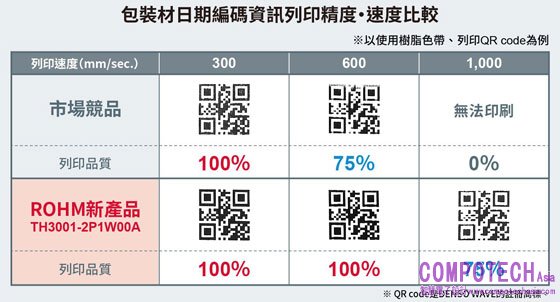 半導體製造商ROHM(總公司:日本京都市)研發出高速、高精度熱感寫印字頭「TH3001-2P1W00A」,適用於食品包裝和物流等環保材質*2的日期編碼資訊*1列印。