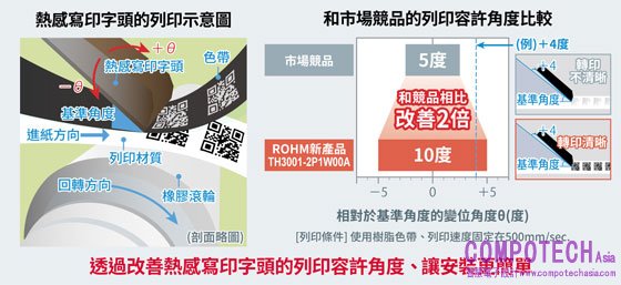 新產品透過改進熱感寫印字頭的形狀,使列印容許角度擴大到10度,約為普通產品的2倍,也因此在維修保養時,熱感寫印字頭更容易安裝,有助縮短各類型應用環境下的安裝維修時間。