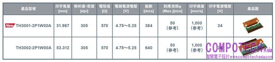 <高速、高精度熱感寫印字頭「TH300x系列」產品>