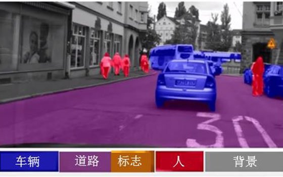 當今自動駕駛領域最熱門的話題之一是“深度學習”,這是機器學習的一個子集。深度學習是一種計算方法,用於根據已經過大量資料訓練的神經網路進行準確的分類和預測。神經網路是一組用於識別資料模式的演算法。許多ADAS應用,如前置攝像頭感知應用中,使用卷積神經網路(CNN)會比傳統的電腦視覺方法更有效地執行物件檢測和分類等任務。在下述示例中(圖1),深度學習用於對車輛、道路、標誌、行人和背景進行分類,並在輸出中直觀地將其區分。德州儀器的深度學習能力帶領完成了大量資源的開發,如德州儀器深度學習(TIDL)軟體框架。該框架簡化了開發人員的演算法培訓、開發和移植過程。有關汽車深度學習的更多資訊,請閱讀我們的博客“汽車中的AI:實踐深度學習”。