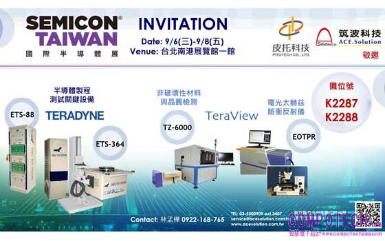 本次皮托科技和筑波科技共同合作參與9/6(三)-9/8(五)SEMICON TAIWAN國際半導體展,展示系統模擬、化合物半導體及車用檢測技術,敬邀您蒞臨交流。