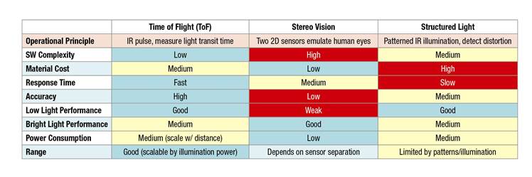 如表1所示,時差測距系統的綜合表現、成本、應用難易度較佳,立體視覺系統可使用標準高解析度相機,故最適合製作3D電影,任何應用若重視低延遲性、準確追蹤手勢、中級精準掃描,時差測距即為最合適選項。