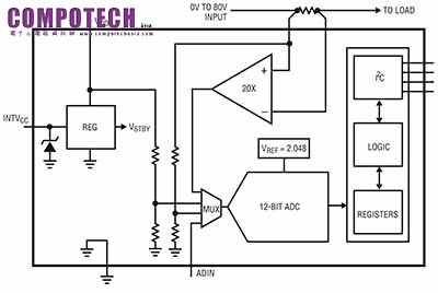 電源監視器有許多不同的設計方法,由於監視系統電源輸入需要多種元件,因此這一點並不令人驚訝。採用感測電阻和放大器可達到測量電流的目的,同時,如果放大器共模範圍擴展至正電源軌並將其輸出轉移對地,則將會是最便利的。測量電壓需要高精度的阻性分壓器,且倘若需要監視的電壓不止一個,那麼還必須在物料清單中添加一個多工器。接下來,是一個多通道類比數位轉換器 (ADC),以及一個高精度參考和某種與微處理器實現介面的工具,同時還可能與相鄰的 IC共用 I/O 線。假如需要檢測最小值和最大值或警報,則必需編寫並持續不斷地執行代碼。由於其整體複雜性很高,且不容易找到合適的元件,因此不難看出為何電源監視適合採用整合式解決方案。