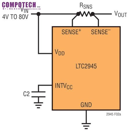 圖 3b:LTC2945 從寬廣範圍輔助電源獲得電源