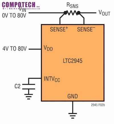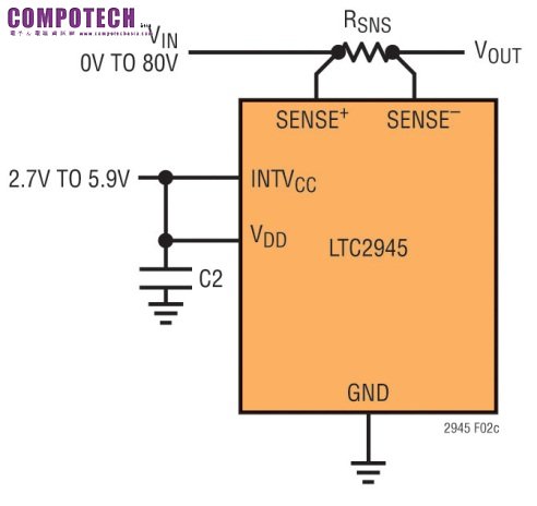 凌力爾特的 LTC2945是將所有必要的功能元件整合在一個小型的 3mm x 3mm QFN 或 MS12 封裝中,因此非常適用於眾多因空間、複雜性或成本因素而無法採用分離式解決方案的應用。LTC2945 的工作電壓雖低至 2.7V,但能監視任何 0V 至 80V 電源軌的電壓和電流,以及其自身特有的電源電壓和附加的電壓輸入。一個內建的並聯穩壓器可為高於 80V 的電源提供支援。為達到更高的彈性,可將感測電阻外置,以使 LTC2945能準確地監視從 mA 級至 A 級、甚至更大的電流。該 ADC 具有 12 位元解析度、一個對於電壓為0.75%以及對於電流為0.75%的最大總未調整誤差 (TUE)。另附加 ADC 輸入 (ADIN 引腳) TUE 也僅為 0.75%。此外,LTC2945 還整合了一個數位乘法器,該乘法器可計算一個 24 位元功率結果,並把該數值與測量、狀態和使用者配置一起儲存在可透過 I2C 存取的暫存器中。