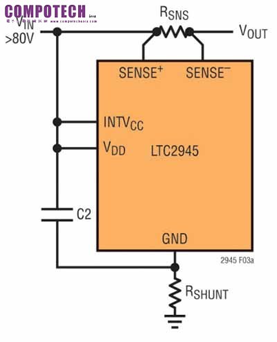 圖 3a:LTC2945 從被監視的電源獲得電源