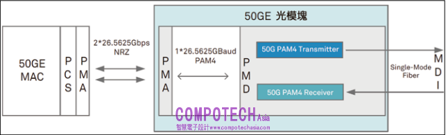 圖說:50GBASE-LR PMD 架構 資料來源 :huawei.com