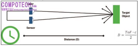 圖:直接飛行時間 (dTOF) 測量光到達目標並返回所花的時間