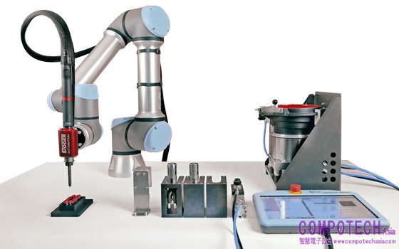 由STÖGER所提供的螺絲鎖附應用套件SPATZ則包含7種不同的UR+認證元件,整組套件皆可透過單一個URCap軟體加以控制,提供自動化工具快換與鎖附等功能。