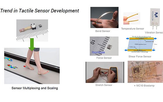 2011 年從工研院衍生創業、專精於材料配方及元件製造的利永環球科技 (Uneo) 則深耕大面積觸覺感測器/超薄型壓力感測器領域;執行副總經理侯智升揭示,此類電子皮膚除了基本位置感知,還能模仿真實人體偵測並分辨壓力、剪力、拉力、彎折力等多重應力,以及溫度、溫度等環境變化。侯智升說明,「阻壓分析」對於穿戴裝置、姿勢矯正、肢體復健及長期臥床照護,乃至床墊/衣物舒適度、汽車駕駛安全、機器人碰撞警示、機械握力調整和微創手術等非常重要;未來更可應用於中醫把脈問診的標準化,結合大數據實施遠距醫療。