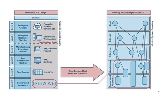 工業4.0正在改變ICS網路安全問題是有原因的。工業4.0的本質是增加對工廠中設備控制的存取權限和可存取性。這意味著對資料的存取權限增加以擴大透明度,減少網路規劃,縮減資本支出,降低營運支出,提高頻寬並優化機器互通。增加對控制的存取權限和可存取性意味著工廠系統的網路安全風險評估正在發生變化。ICS網路安全解決方案需要適應不斷變化的風險,而傳統實施於系統的防範措施(例如設置防火牆和將設備置於閉鎖門之後)與工業4.0的目標相背。這意味著需要對設備進行安全加固,以便在確保安全的方法中實現更多功能。為了實現可信資料和安全操作,身份和完整性將成為此領域中每個設備的核心。