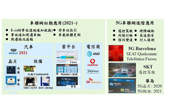 由於車廠非資通訊專家,思科 (Cisco)、微軟 (Microsoft)、華為等業者皆投入雲端平台的建置;從晶片、通訊、通訊設備、車廠雲端平台到電信商,均將 2021 年前後視為聯網車/車聯網正式商用的起跑點,但初期仍以 4G 為主;高階 5G 車聯網應用仍在測試中,預計今年年底、最晚明年第一季才會拍板 5G -V2X 標準 (R16)。工廠應用則以 AI 機器人、安全警示、AR 協同作業為主,結合行動邊緣運算 (MEC) 和 AI 可提升作業員效率、產線良率及高風險作業環境的安全度,還能做產線禁區控管,勒令閒人勿近或對未配戴安全裝備的工作人員示警。