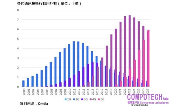 Omdia 預測 2027 年 5G 用戶數將達 59 億,相當於 70.9% 用戶滲透率,顯示終端消費者對於 5G 需求提升,接下來數年也有望出現開創性的 AR 服務或裝置,重塑 5G 市場前景。