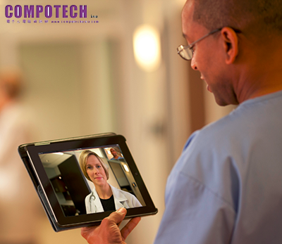 有了Polycom RealPresence Mobile(如照片所示)視訊協同作業解決方案,醫療機構能將視訊延伸至每個角落,方便醫護人員與病患接觸,或向院外專家徵詢意見。