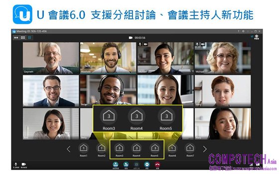 於防疫期間,教育機構採用遠距教學機會大幅增加,U會議6.0版著重於提升遠距教學之易用性,包括會議主持人和分組討論功能。用戶可於預約會議時指定會議主持人,在會議進行中開啟分組討論功能,與會者可加入討論室進行分組討論。以教育場景舉例,教師可在視訊授課中,將學生分成多個小組進行線上討論,並可至各分組討論室中進行指導。會議主持人也擁有進階管理權,如要求指定的與會者離開會議,進一步保障視訊會議安全。