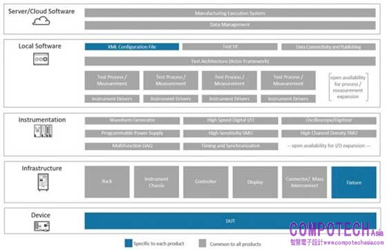 圖3:方案圖突出顯示:對於新產品設計只需開發一個新的XML設定檔和DUT夾具。