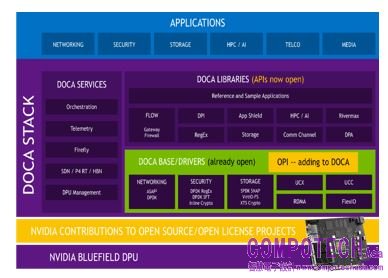 圖一_DOCA 向來建立在開源的基礎上,如今 NVIDIA 開放外界使用 DOCA 函式庫的 API,並計劃增加支援開源可程式化基礎設施專案