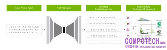 該模型是 Evovyne 旗下名為 ProT-VAE 的工作流程核心,可將 BioNeMo 與充當篩檢器的變分自動編碼器相互結合。
