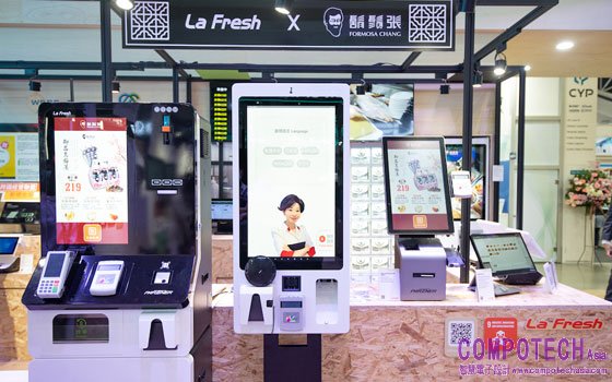 本次COMPUTEX Smart+智慧餐飲展區特與鬍鬚張攜手合作,以鬍鬚張實際應用場景,導入AI多國語音辨識Kiosk、現金Kiosk自助點餐、智慧取餐櫃等自助點餐流程,結合POS系統、KDS廚房系統、廣告叫號系統等應用,透過LaaS全通路平台的資料整合,打造前後場全自動化智慧餐廳「鬍鬚張未來科技概念店」,作為勞力短缺的解決方案,提高服務效率、優化消費體驗。