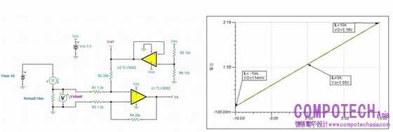圖6:帶運算放大器的隔離漏流電流測量電路