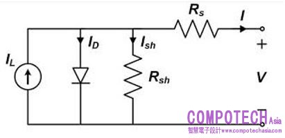 如圖4所示,分流電阻Rsh的大小從幾百千歐姆到幾千兆歐姆不等,且與溫度成反比關係。由於並聯電容的大小為幾微微法拉,所以它不重要,因此圖4中沒有顯示。