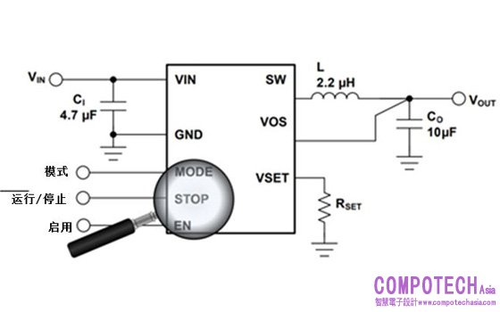 TPS62840的STOP輸入管腳(見圖1)立即(在電流開關週期之後)和暫時停止調壓器的開關。這段時間內,存儲在輸出電容器中的電荷為應用供電;穩壓器絕對不會產生紋波或開關雜訊。這種情況下,該應用可以執行無失真、精確的資料獲取和RF通信程式。