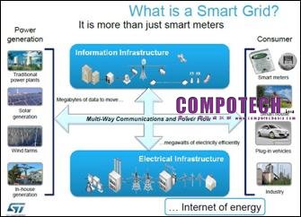 ST意法半導體工業暨功率轉換產品部特別專案總監Oleg Logvinov來台參與了今年舉辦的智慧城市展演說,針對以上智慧電網架構發展趨勢,對智慧電網提出新解,它不只是智慧電表而已,而應該稱它為能源聯網(Internet of energy)。Logvinov表示,智慧家庭結合電動車將改變人們的生活模式,電動車將成為家庭用量最吃重的設備,一旦電動車回家插電充電時將有45%電力會流到汽車上,為此配電機制必須全面改變。