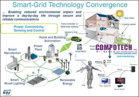 Logvinov指出,在資通訊界提倡物聯網世界下,智慧電網技術必須與物聯網技術聚合,才能實現降低對環境的衝擊並且透過安全與可靠的通訊技術改善每日的生活品質。要達此目標必須融合電力、連結性、感測與控制等四大技術,使電廠與智慧工廠、智慧街道照明、再生能源與家庭與建築自動化等網路之間網網相通,在居家環境方面,應用這些技術於佈建太陽能板、照明控制、智慧家電與負載管理、智慧電表、汽車電網以及家庭控制器與多媒體閘道器等設施。而對個人身上,透過運用這些技術得以實現身體閘道器,能讓個人健康資訊透過藍牙技術傳輸至手機再到健康照護伺服器上、然後由照護伺服器將有用資訊呈現到機上盒或醫生電腦中。個人與家庭網路緊密互通,隨時能遠端照護患者與監控。