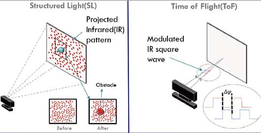 視覺(Stereo Vision)、解析反射角度的結構光(Structured Light) 和聚焦反射時間的飛時測距(Timeof-Flight, ToF)。隨著工作原理的不