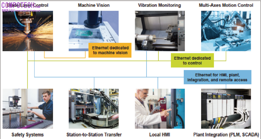 IIoT 最大麻煩:無法相容協作,亦無法使用標準乙太網。其挑戰在於:將四種必要的工業物聯網技術——網路、處理、使用者介面(UI) 和安全性,整合在一處。恩智浦(NXP) 的QorIQ Layerscape LS1028A 處理器可滿足此需求。只有調整綁定每個領域的網路,才能順利合併IT 和OT。因為每個領域在功能上差異很大,網路架構也不盡相同。IT 領域包含將資料轉換為有用資訊的系統,對於製造商來說,包括:會計、電子郵件和客戶關係管理(CRM),還包括製造特定的系統,例如,企業資源規劃(ERP) 和物流這些基於電腦的系統。
