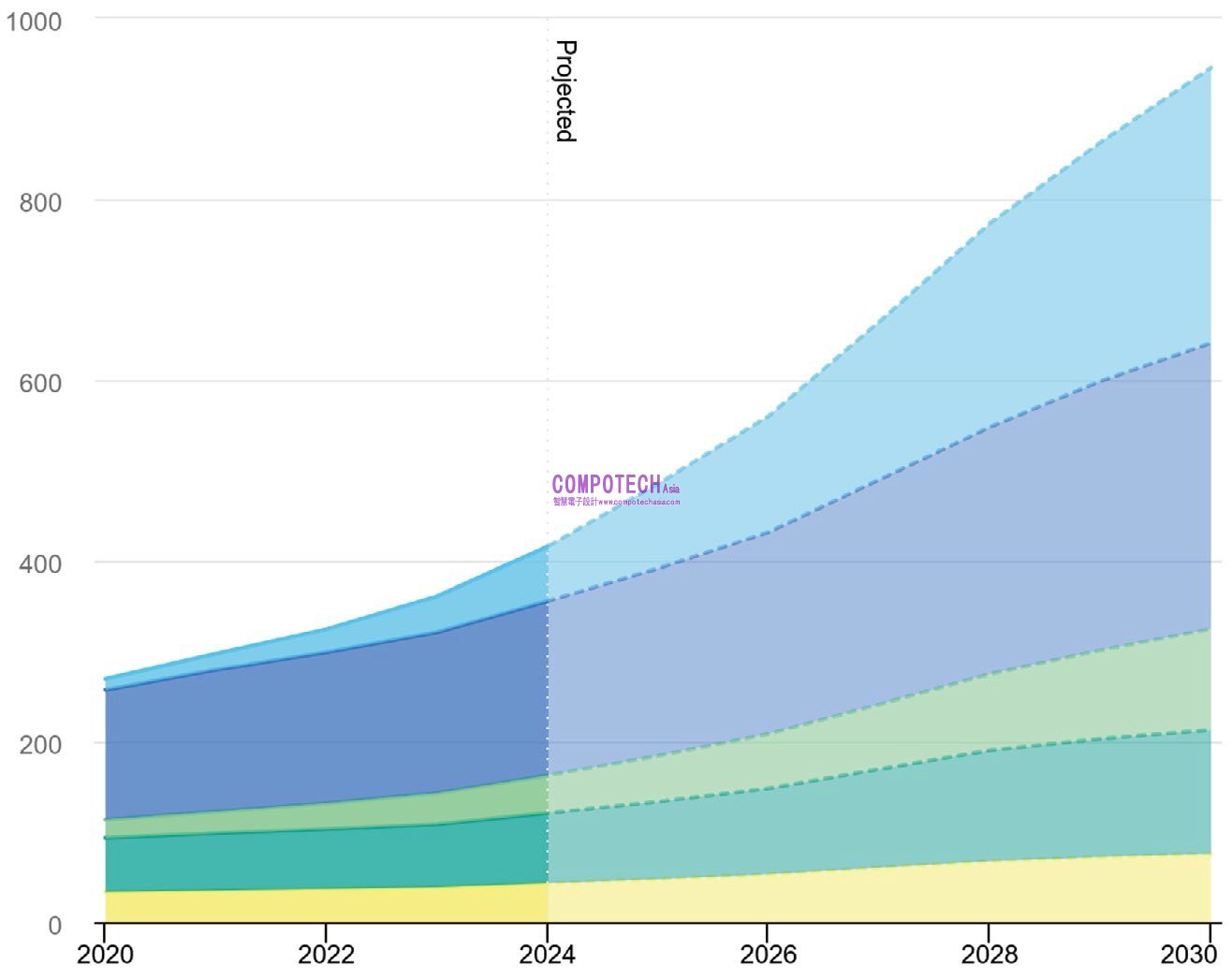 到2030 年數據中心發電的二氧化碳排放量達到峰值,約為320 MT,然後進入淺幅下降,至2035 年約為300MT 左右。儘管數據中心二氧化碳排放量增長迅速,但數據中心在整個電力系統中所佔的比例仍然相對較小,從目前佔全球發電量的約1%,到2030 年上升到3%,佔全球二氧化碳排放總量不足1%。