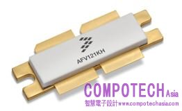 AFV121KH電晶體提供1 kW的功率,效率達百分之59,在960-1215 MHz頻帶的功率更超過1.2 kW、效率達百分之51,若在1030 MHz經過窄頻效能調校正,功率還會更高。高功率代表客戶可以減少零件數、進而節省可觀成本。