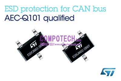 ESDCAN02-2BWY和ESDCAN03-2BWY是車規雙線(dual-line)Transil™保護晶片,承襲意法半導體在瞬態電壓防護市場的長期領導優勢 及受益於其對汽車市場的深入了解 。獨特地結合不同的參數,包括3.5pF超低電容和24V最低暫時過(stand-off)電壓,意法半導體成功地開發全球首款符合所有主要介面標準規範的CAN保護晶片,包括CAN-FD、LIN、FlexRay、MOST及SENT。