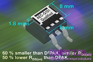為節省 PCB 空間及成本,並且為了針對需要多個 MOSFET 的應用推出更小更輕的模組,SQJQ402E 的導通電阻與 D2PAK 封裝器件類似,而且連續電流更高,同時可使體積縮小 60%,並使厚度減少 60%。為了達到節能效果,SQJQ402E 的導通電阻是 DPAK 封裝的一半,耐電流是其兩倍,厚度比 DPAK 減少 21%,一且只有僅增加 12%的footprint。