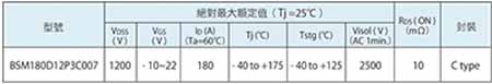 該產品內部電路為2in1結構,採用SiC-MOSFET及SiC-SBD,額定電壓1200V,額定電流180A。