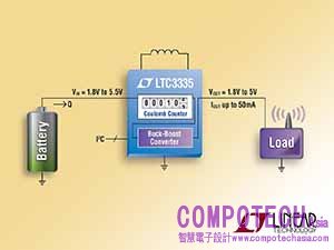 2015年9月23日--凌力爾特 (Linear Technology ) 日前發表nanopower 高效率同步升降壓轉換器LTC3335,該元件具備晶片上的精密庫侖計數器,並可提供50mA的連續輸出電流。透過680nA的靜態電流和5mA至250mA的可編程峰值輸入電流,使該元件非常適用於各種低功耗電池應用。1.8V至5.5V輸入範圍和1.8V和5V之間的8組用戶可選輸出,提供了可透過輸入電壓高於、低於或等於輸出的穩定輸出供應。此外,該元件內建的精密庫侖計數器(±5%電池放電量測精度)可針對長使用壽命的一次電池應用提供累積電池放電精準監測,其具有極平坦的電池放電曲線。典型應用包括遠端感應器和顯示器,以及凌力爾特Dust Networks® SmartMesh®無線感測器網路系統。