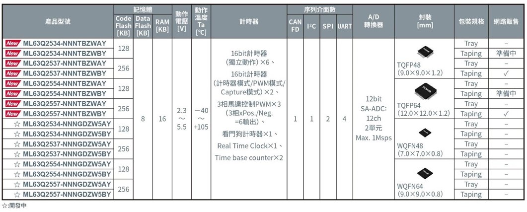 ROHM計畫推出記憶體大小、封裝、引腳數和包裝規格不同、共16種型號的AI微控制器。採用TQFP封裝的有8種型號,已從2025年2月開始依次投入量產(樣品價格3,000日元/個,未稅)。其中記憶體(Code Flash)大小256KB、採用編帶包裝的2種型號可以和微控制器評估板一起透過電商平台購買。