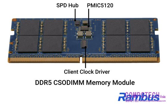 圖二:搭載Rambus PMIC、CKD和SPD Hub晶片的DDR5 CSODIMM記憶體模組