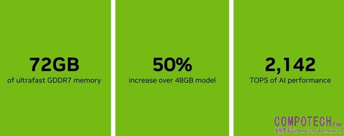 此外,72GB 的超高速 GDDR7 記憶體相較 48GB 版本提升 50%,讓開發者能在本機訓練、微調與原型驗證更大型的模型。
