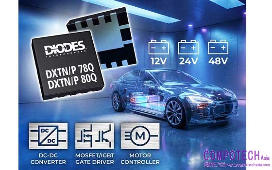 2026年1月6日--Diodes 公司(DIOD)(Nasdaq: DIOD)宣布推出 DXTN/P 78Q與80Q系列,擴充符合汽車規範的雙極型(Bipolar)電晶體產品組合。這兩個系列是超低VCE(sat) NPN與PNP電晶體,提供業界領先的傳導效率與熱性能,針對高要求的汽車電源開關與控制進行優化。