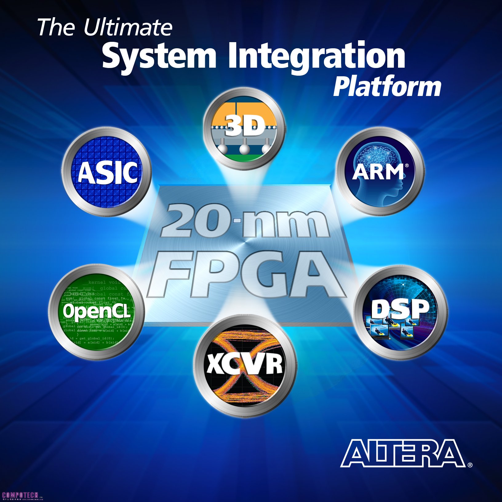 Altera的20-nm混合系統架構包括40-Gbps收發器整合技術、下一代精度可調數位訊號處理(DSP)模組架構以提供性能高達5 TFLOP (每秒5萬億次浮點運算)的IEEE 754標準浮點運算性能、整合了FPGA和用戶可訂製HardCopy® ASIC的異質結構3D IC,還有各種其他技術,包括,記憶體、協力廠商ASIC,以及透過創新高速互聯技術實現的光介面等。Altera是業界唯一能夠在一個元件中整合FPGA和ASIC的公司。