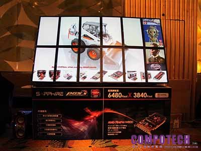 活動現場匯集了多家工作站整合廠商與軟體夥伴,包括惠普科技、彩原科技、Maxon,皆出席與AMD和藍寶PGS共同闡述AMD FirePro優異的產品特色和驚人的效能。現場展示多款AMD FirePro專業繪圖解決方案,包括:由兩張AMD FirePro W600串聯所驅動的藍寶12螢幕電子數位看板、單張AMD FirePro W9000支援的4K超高畫質畫面以及不規則畫面排列顯示,讓使用者享受最完善的專業繪圖解決方案。