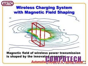 無線充電雖然相對便利與安全,但是傳輸速度也比較慢,因此為了提高傳輸效率,車輛中心特別開發出集中磁場型無線充電技術,利用特殊的線圈構形(五面方盒型)設計來集中無線電力傳輸的磁場,並集中於電力傳輸作用區,增加傳輸效率及傳輸距離,大幅減少非磁場作用區之磁場分布,因此可減少電磁干擾影響,並可改善電磁場所產生之高溫現象。本系統的優點為應用功率範圍廣,小至