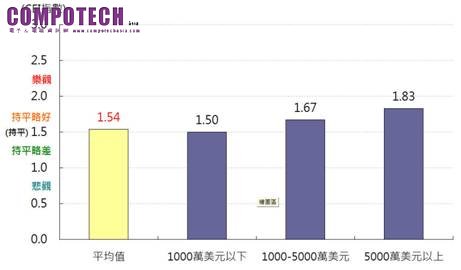 從受訪台廠規模來看,小型廠商的平均值為1.5,對第3季看法持平。中型與大型廠商都高於總平均指數,其中又以大型廠商最為看好第3季景氣。