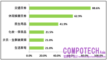 反觀初老銀髮族中的男性,高達9成喜好透過「電腦」連網進行網路購物,以能跨平台網頁查詢商品、比價及審視商家評價為主,較以經濟、實務導向為購物考量。但整體來說,透過智慧型手機及電腦等連網裝置,進行網路購物標的仍以交通票券(65.6%)最多,逾1成有固定網購的習慣,每人每月平均整體網路購物金額為3,633元。