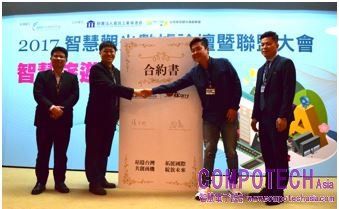 圖說:在經濟部技術處科技專案支持下,資策會「VZ TAIWAN智慧觀光」攜手直流電通「iCarry我來寄」,共同打造「智慧觀光購物 免自提我來寄」服務,今(15)日在中華民國觀光產業資訊協會榮譽理事長葉正吉(左一)與中華民國旅館經理人協會理事長張明琛博士(右一)的見證下,由資策會服創所主任暨STTA聯盟總召集人張文村(左二)與直流電通總經理陳彥甫(右二)代表雙方正式合作簽署啟動國際拓展計畫,明年將複製台灣成功經驗至美國、加拿大、日本與泰國等國家。