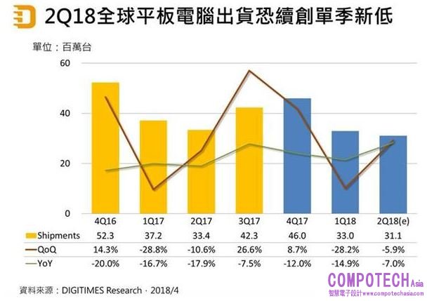 DIGITIMES Research:新品寥寥、需求未見回溫 2Q18全球平板電腦出貨將為3,106萬台
