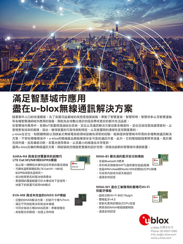 滿足智慧城市應用盡在u-blox無線通訊解決方案