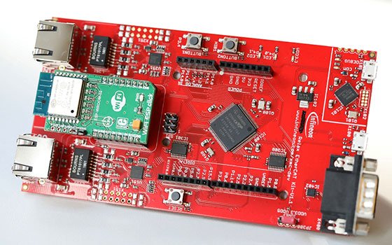 XMC4800 裝置具備 Cortex ARM M4F 微控制器,可提供多達六個標準 CAN 與 ETHERCAT 連線功能,適用於物聯網閘道應用,並可受惠於多種與Arduino 及 Click Board 外型相容的周邊裝置之優點。結合 AWS Greengrass 軟體可讓開發人員輕鬆開發及利用 AWS 提供的雲端功能。