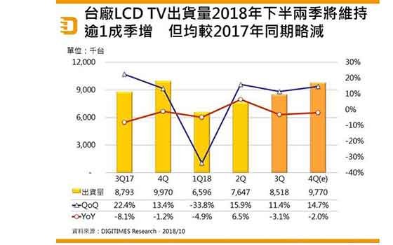 DIGITIMES Research:產銷調查:台廠4Q18 LCD TV出貨量將季增14.7% 60吋以上機種站穩1成比重